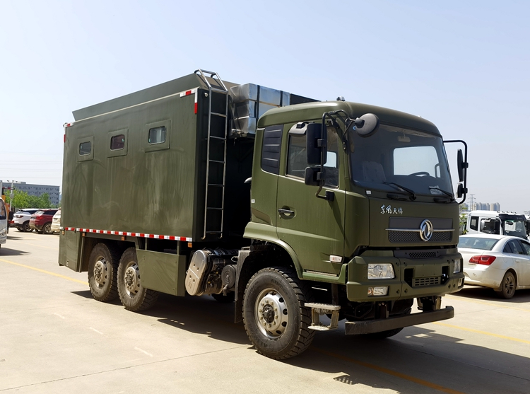 國六新款東風天錦六驅(qū)越野炊事車是在野外條件下烹制熱食的專用車輛。具有越野機動性好、作業(yè)能力強、自動化程度高、可在...